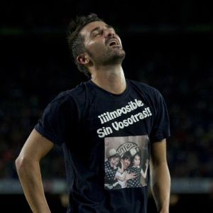Depois de ficar oito meses afastado dos gramados David Villa entrou no segundo tempo da partida entre Barcelona x Real Sociedad o jogador fez o quinto gol e na comemoração tirou a camisa do Barça e homenageou a esposa e as duas filhas.